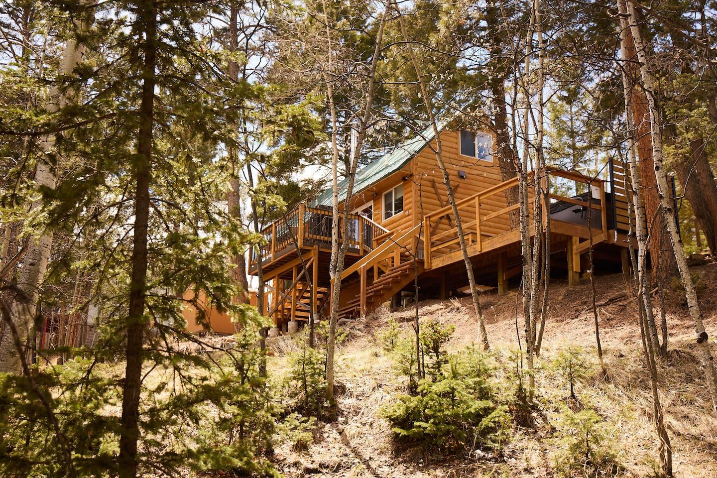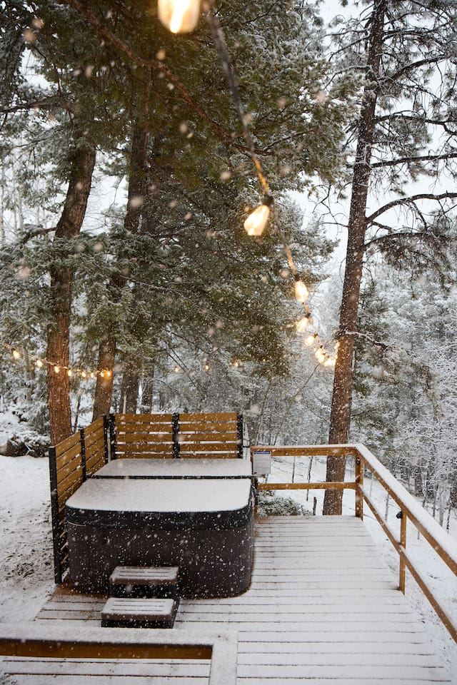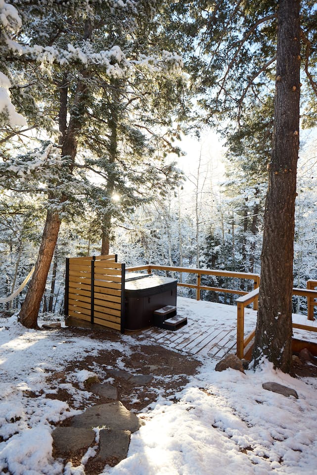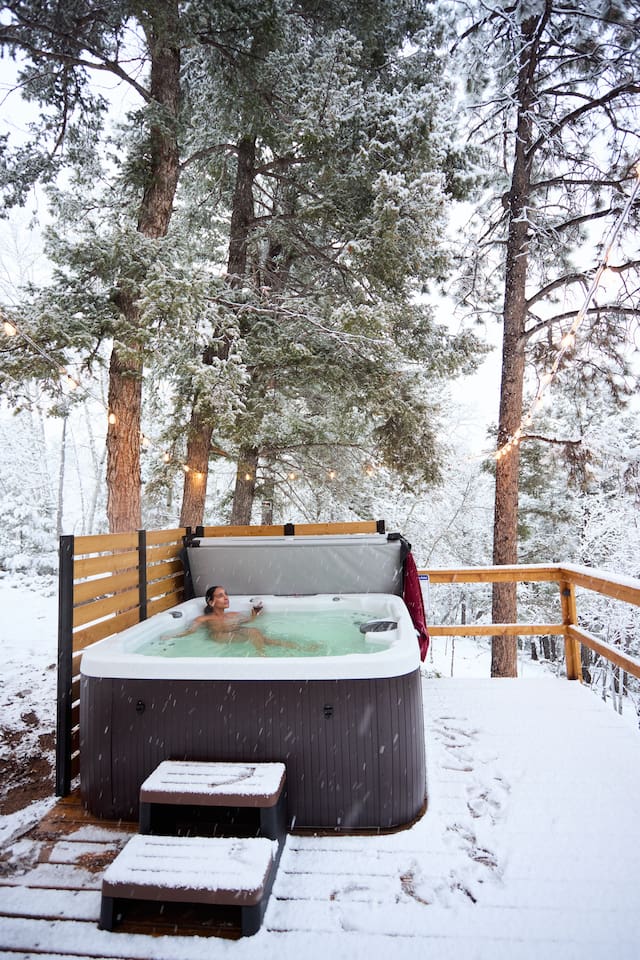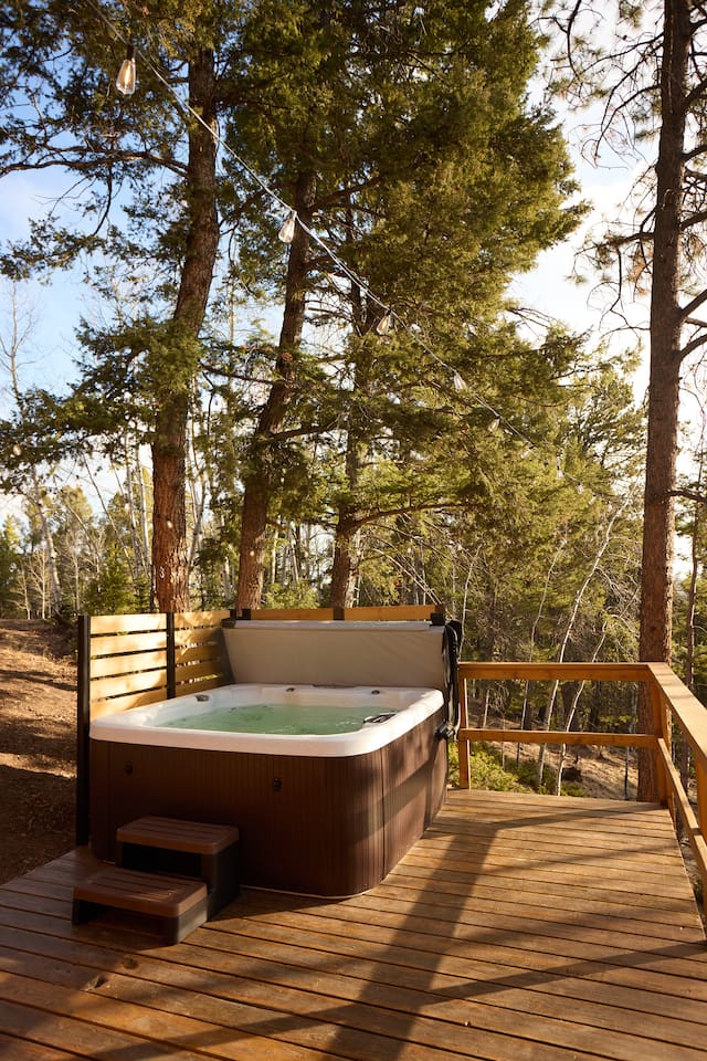 Follow on IG and tag your stay @aspen_hideaway Aspen Hideaway is a newly renovated mountain-modern cabin located in the scenic Rocky Mountains of Colorado. Perfectly situated for exploring the surrounding outdoor wonders, it’s just a short drive from local attractions, adventure spots, and breathtaking landscapes. Whether you’re seeking peaceful relaxation or outdoor excitement, this cabin offers the ideal getaway. Location Highlights: 45 minutes from downtown Colorado Springs 1 hour 45 minutes from Denver 40 minutes to Garden of the Gods 1 hour to Buena Vista 2 hours to multiple ski resorts Nearby Activities: Wolf Sanctuary just steps away National Forest access (10 minutes away) with hiking, ATVing, and Jeep rentals 3 nearby reservoirs for world-class fishing and kayaking Drive to the top of Pike’s Peak, one of Colorado’s tallest mountains Upon booking, you'll receive a detailed house manual with recommendations for things to see, do, eat, and drink in the area! Living Essentials: The home is 500 square feet with an open floor plan. There is a full kitchen with high-quality cookware and all dining essentials. Basics such as, cooking oil, salt and pepper, a few spices, condiments, etc. are provided. A hot bar is available with Starbucks coffee, tea, and hot chocolate. The home is stocked with books, board games, and an easy to use Alexa Echo sound system indoors and out. The electric fireplace is a wonderful source of heat and ambiance. All high-quality linens, and towels are freshly-washed right before your stay. Bed & Bath: The bedroom features a cozy queen bed, and for kids or extra guests, a quality air mattress can be set up in the loft, which serves as a private sleeping area. The bathroom includes a spa-like walk-in shower and is stocked with toiletries and extras in case you forget anything. Hot tub: The 5-person spa truly sets this place apart from all the rest. It sits up on the deck overlooking the mountains during the day and stargazes at night. Most nights in the Rockies are clear enough to see the Milky Way and star-gazing is exceptional here, especially when kicking back in the hot tub with a glass of wine. Outdoor Living: Set on two peaceful, wooded acres, the seasonal outdoor space includes two spacious decks with beautiful views, a relaxing hot tub, café lights, a dining table, and a gas grill—perfect for enjoying the fresh mountain air. Privacy and Road Noise: Although the cabin feels peaceful and secluded, it’s part of a quiet mountain neighborhood, as is common in Colorado. There’s little to no road noise, and most of the time, it’s completely silent. The nearest neighbors are to the right, but they’re very quiet and respectful, keeping to themselves. 👉 Local Attractions 🐺 5 Minutes – Colorado Wolf and Wildlife Center 🪨 15 Minutes – Florissant Fossil Beds 🦕 15 Minutes – Rocky Mountain Dinosaur Resource Center 🦓 50 Minutes – Cheyenne Mountain Zoo 👉 World-Class Fishing 🪝 20 Minutes – Dream Stream – Lake George 🐟 25 Minutes – Eleven Mile Canyon 🛶 1 Hour – Eleven Mile Reservoir 🌊 1 Hour – South Platte River – Deckers 👉 Sledding, Skiing & Snowboarding ⛷️ < 2 Hours – Frisco Adventure Park (sledding), Monarch Mountain, Cooper, Breckenridge, Keystone, Vail 👉 Exploring Pikes Peak 🚞 40 Minutes – Cog Railway to the Top 🚗 1 hr 30 Minutes – Drive to the Top 🏘️ 40 Minutes – Manitou Springs (Explore the town at the base) 🥾 40 Minutes – Manitou Incline 👉 Hospitals 🚑 15 Minutes – UCHealth Pikes Peak Regional Hospital – Woodland Park 🏥 45 Minutes – UCHealth Memorial Central – Colorado Springs 🧸 55 Minutes – Children’s Hospital Colorado – Colorado Springs 👉 Airports 🛬 50 Minutes – Colorado Springs Airport 🛄 1 hr 45 Minutes – Denver International Airport 👉 Colleges & Universities 📘 20 Minutes – Charis Bible College 🎓 40 Minutes – Colorado College 🏛️ 45 Minutes – University of Colorado – Colorado Springs 🛩️ 1 Hour – Air Force Academy